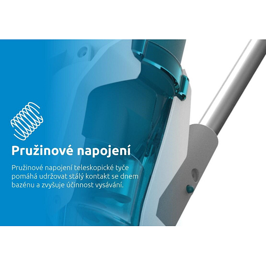 - pružinové napojení teleskopické tyče - udržuje těsný kontakt se dnem bazénu (teleskopická tyč není součástí balení)