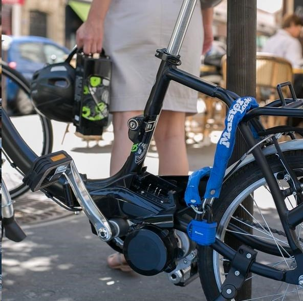 Zpevněný ocelový řetěz s ocelovým visacím zámkem je 90 cm dlouhý a obsahuje ocelové spojky o průměru 6 mm, které odolávají řezání. Nylonový kryt řetězu zabraňuje poškrábání. Visací ocelový zámek o průměru 40 mm je odolný proti povětrnostním vlivům. Plastový kryt na visacím zámku zabraňuje poškrábání. Třmen s průměrem 9 mm je vyroben z oceli pro odolnost proti řezání. Obsahuje 4-kolíkový válec zabraňující vyhmatání a dvojitou západku odolnou proti vypáčení.