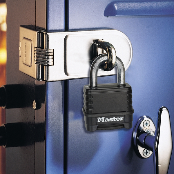 - Visací zámek o šířce 56 mm s tělem ze zinkového odlitku s povrchem potaženým termoplastem odolným proti povětrnostním vlivům.