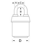 • Visací zámek o šířce 54 mm z vrstvené oceli.