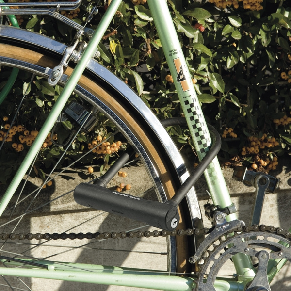 Tělo zámku je vyrobené z tvrzené oceli odolné proti povětrnostním vlivům. Jeho třmen je z kalené oceli s osmiúhelníkovým profilem o průměru 12 mm. Vinylový potah třmenu zabraňuje poškrábání laku. Zámek obsahuje diskovou cylindrickou vložku odolnou proti vyhmatání a dvojitou západku odolnou proti vypáčení. Navíc krytka klíčové dírky zabraňuje vniknutí nečistot. Součástí balení je držák pro praktické skladování a 2 ks klíčů.
