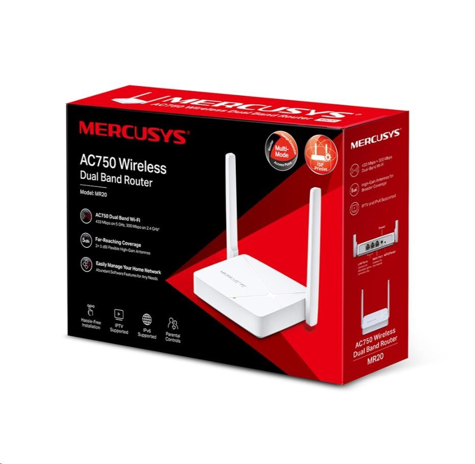 MERCUSYS MR20 WiFi5 router (AC750, 2,4GHz/5GHz,1x100Mb/s WAN, 2x100Mb/s LAN)