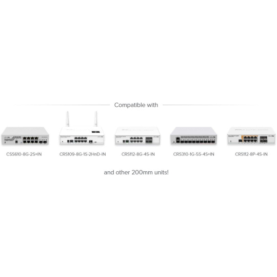Popis produktu Rackmount kit RMK-2/10 umožňuje instalaci dvou menších zařízení MikroTik s šířkou 200mm do tradičních 19 palcových datových rozvaděčů. Případně můžete natrvalo odstranit delší část z obou držáku a nainstalovat pouze jedno MikroTik zařízení s šířkou 200mm do klasického 10 palcového racku. Seznam kompatibilních zařízení • CSS610-8G-2S+IN • CRS109-8G-1S-2HnD-IN • CRS112-8G-4S-IN • CRS310-1G-5S-4S+IN • CRS112-8P-4S-IN Obsah balení • (2) Držák • Šroubky Technické parametry Fyzické charakteristiky Velikost:10", 19" Provedení:Rackmount Materiál:Hliník.