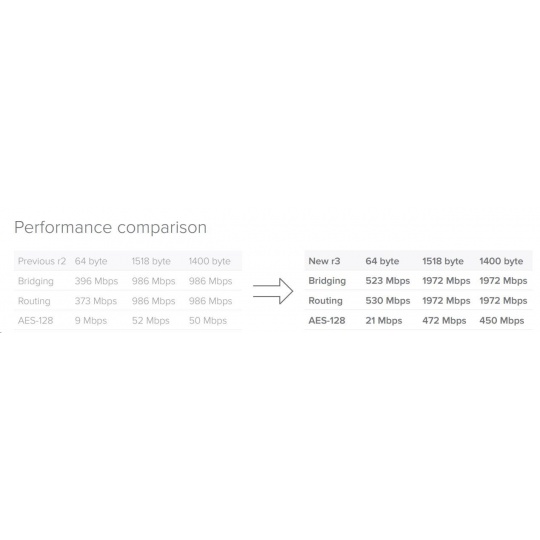 Popis produktu RouterBoard RB750Gr3 představuje plně gigabitový RouterBoard. Jedná se o vylepšenou variantu RouterBoardu RB750G. Je ideální pro vnitropodnikové či domácí sítě postavené na gigabitových prvcích. Stejně jako RB750G je dodáván včetně krytu a napájecího zdroje. Nová revize v3 má rychlejší CPU, více CPU jader, větší paměť a navíc obsahuje microSD slot a USB port. RouterBoard lze napájet pomocí klasického konektoru jack i přes PoE (k tomu je určený PORT 1, ostatní porty POE napájení nepodporují). RouterOS Mikrotik plně podporuje sítě IPv6. Technické parametry Konektory a rozhraní Možnost více WAN:Ano Slot na paměťové karty:microSD Rychlost LAN:(5) 10/100/1000Mbps Gigabit LAN:Ano USB:Ano Napájení Napájení přes PoE:6 .. 30V DC Typ napájení:DC konektor, PoE Typy PoE:PoE-In (pouze) Max. spotřeba energie [W]:5 Napájení přes konektor/svorkovnici:8 .. 30V DC Fyzické charakteristiky Provedení:Desktop Ventilátory:Bez ventilátoru Šasi:Plastové Provozní teplota [°C]:-30 až 70 Šířka [mm]:113 Výška [mm]:28 Hloubka [mm]:89 Hardware CPU:MT7621A Frekvence CPU [MHz]:880 Počet CPU jader:2 Interní uložiště [MB]:16 RAM [MB]:256 Software Operační systém:RouterOS - L4 Podpora IPv6:Ano Výchozí IP adresa:192.168.88.1 Výchozí jméno a heslo:admin / -.