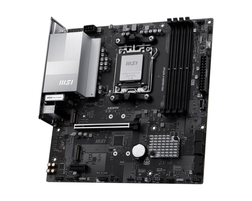 PRO B840M-P WIFI6E offers a simple design with a harmonious silver color scheme that perfectly matches both white and black PC builds. It is engineered with many exclusive features of MSI, a Wi-Fi 6E with EZ Antenna, 2.5G LAN, and PCIe 4.0 M.2, ready for the AMD Ryzen™ 9000 series processors.