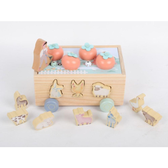Multifunkční dřevěná pojízdná farma se zvířátky 3v1