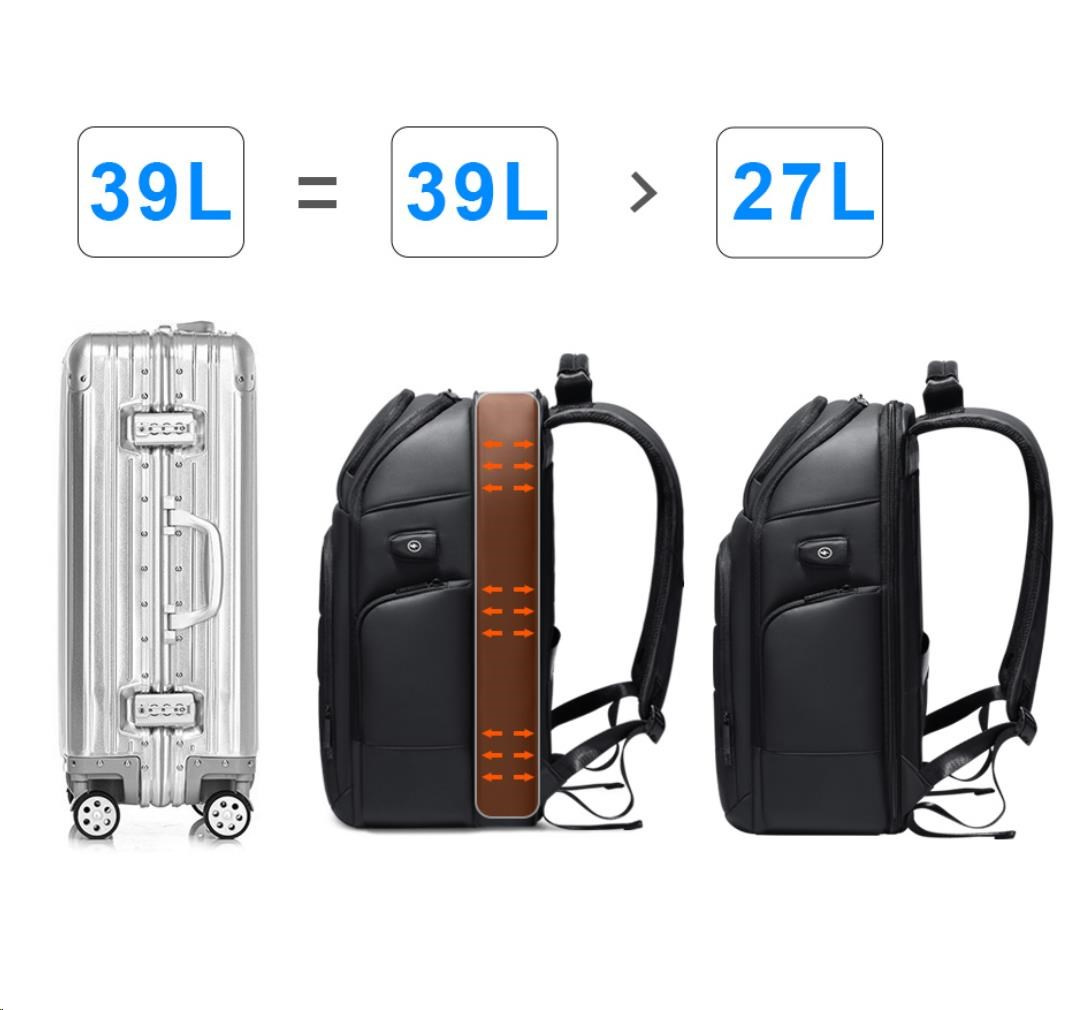 Pokud se vám podaří zaplnit štědrý objem batohu, můžete jej jednoduše navýšit otevřením zipu v jeho střední části. Dostanete se tak z 27 l až na 39 l objemu, který odpovídá menším cestovním krosnám nebo příručním kufrům.