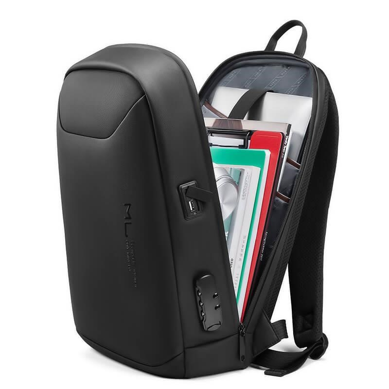 MYBALO Berlin je bezpečnostní městský batoh se zámkem na kód a pevným skeletem, které ochrání vaše uložené věci. Objem batohu činí 13 l. Najdete zde hlavní kapsu s přihrádkami na notebook do 15,6" a tablet do 9", kapsu na láhev a skrytou bezpečnostní kapsu. Díky pevnému skeletu a bezpečnostnímu zámku TSA je perfektním ochráncem pro vaše uložené věci, obavy s ním můžete hodit za hlavu. Pro nabíjení elektronických zařízení přímo z batohu můžete využít vestavěný USB port. Hlavní kapsu lze otevřít až o 180 stupňů, což je velmi praktické při ukládání i hledání věcí. Díky kvalitnímu polstrování je nošení velmi pohodlné. Pokud s batohem cestujete, můžete využít praktický držák na kufr. Batoh je vyroben z nepromokavého kvalitního materiálu s dlouhou životností. Ochrání tak všechny vaše věci před vlivy počasí a vydrží vám opravdu dlouho. Bezpečnostní batoh MYBALO Berlin je skvělou volbou do práce, do města, na pracovní cesty i pro volný čas.