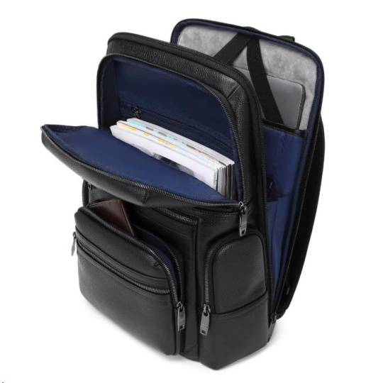 MYBALO Matterhorn má dvě boční kapsy. K uložení lahve na pití nebo vlhkého deštníku doporučujeme použít spíše pravou boční kapsu, jelikož v levé boční kapse se nachází integrovaný USB a USB-C port k nabíjení vašich elektronických zařízení a nejspíš zde budete mít uloženou power banku nebo telefon. Úložný prostor tohoto batohu je řešen opravdu chytře. Kromě dvou bočních kapes batoh disponuje dvěma předními kapsami a množstvím vnitřních kapes pro skvělou organizaci vašich věcí. Samozřejmostí je oddělená kapsa s přihrádkami na notebook a tablet, kterou navíc můžete otevřít až o 180 stupňů.
