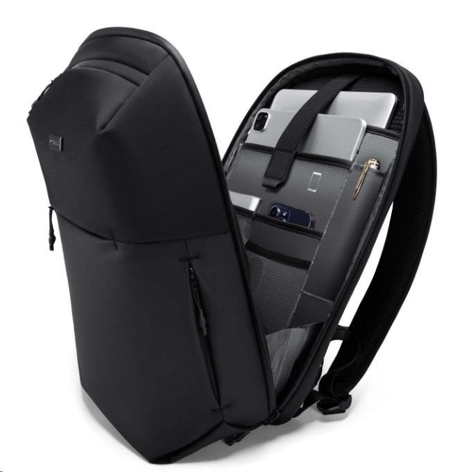 MYBALO Spire je businessový a městský batoh. Nabízí úložný prostor o objemu21 l, přihrádku na notebook do úhlopříčky 15,6" a tablet do 9", otevírání o 180 stupňů, skrytou kapsu na cennosti, poutko na klíče a praktické vnitřní přihrádky. Jeho velkou výhodou je nízká hmotnost: jen 0,85 kg. Pohodlné nošení zajišťuje kvalitní polstrování popruhů a zádové části. Batoh je vyroben z nepromokavého kvalitního materiálu s dlouhou životností. Ochrání tak všechny vaše věci před vlivy počasí a vydrží vám opravdu dlouho. Businessový batoh MYBALO Spire je skvělou volbou do práce nebo do města.