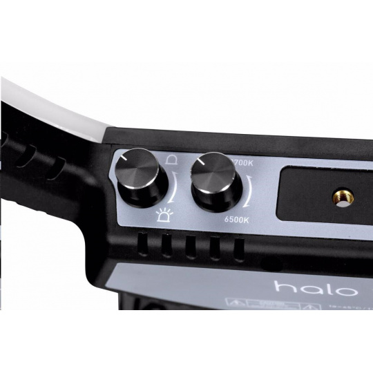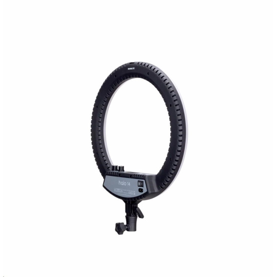 Díky průměru 35,5 cm (14") a lehké konstrukci je Halo 14 ideální kruhové světlo pro práci v malých prostorech a pro častý transport z místa na místo. LED kruhové světlo Halo 14 lze napájet dodávaným AC adaptérem.