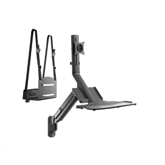 Nástěnná pracovní stanice monitor, klávesnice, PC Fiber Mounts M8C38 Kompletní pracovní stanice, držák monitoru 17-32", klávesnice a PC Toweru Kvalitní nástěnný systém pro vytvoření pracovní nebo informační stanice - 3D polohovatelný držák na monitory 17-32" včetně poličky na klávesnici i s myší + univerzální nástěnný držák na PC Tower. Plná polohovatelnost držáku monitoru s policí - otáčení, naklápění, výškové polohování, rotace monitoru, korekce roviny, možnost zaklopení police. Police na klávesnici (a myš) má rozměr 660 x 220mm, možnost naklopení nebo zaklopení. Na držáku je i přihrádka na vizitky, katalogy apod. Nástěnný držák na PC Tower má nosnost 15kg. Barevné provedení černé. Záruka 3 roky. Plnohodnotná nástěnná pracovní stanice na monitor, klávesnici s myší a PC Tower, plně polohovatelné, TOP kvalita - Fiber Mounts M8C38 Technické údaje: maximální hmotnost monitoru 9kg maximální hmotnost PC Toweru 15kg velikost monitoru 17" až 32" držák monitoru podporuje VESA 75x75 a 100x100 kompletní polohovatelnost držáku monitoru s policí otáčení do stran, naklápění, nastavení výšky a vzdálenosti od zdi výškové polohování až o 515mm funkce pivot držáku monitoru police na klávesnici o rozměrech 660x220mm možnost náklonu až 5°, možnost zaklopení k monitoru nástěnný držák na PC Tower včetně popruhů instalační materiál systém vedení kabeláže barevné provedení černé záruka 3 roky.