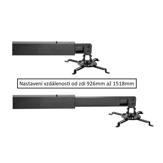 Nástěnný držák na projektory Fiber Mounts M9C45 Nástěnný držák na projektor, nastavení vzdálenosti od zdi 926-1518mm, otočný +/-180°, sklopný +/-15°, skryté vedení kabeláže, nosnost 15kg Kvalitní nástěnný držák na projektor. Nastavitelná vzdálenost od zdi 926mm až 1518mm, naklápění do stran +/- 15°, otáčení do stran +/- 180°, univerzální úchyt s roztečí 54mm až 320mm na 3 nebo 4 šrouby umožňuje uchycení naprosté většiny projektorů, nosnost 15kg. Držák má systém pro skryté vedení kabeláže, instalace a nastavitelnost jsou velmi snadné. Nástěnná instalační plocha o rozměrech 505x269mm zajišťují výborné rozložení hmotnosti a spolehlivé uchycení na zdi. Nástěnný držák na projektory s krátkou projekční vzdáleností Fiber Mounts M9C45 Technické údaje: nosnost 15kg univerzální, rozteč otvorů pro uchycení 54-320mm uchycení projektoru na 3 nebo 4 šrouby nastavitelná vzdálenost od zdi 926-1518mm naklápění do stran +/- 15° otáčení do stran +/- 180° nástěnná instalační plocha o rozměrech 505x269mm systém pro skryté vedení kabeláže kvalitní kovová konstrukce instalační sada šroubů, hmoždinek a vrutů barevné provedení černé záruka 5 let Systém pro ukrytí veškeré kabeláže, polohování projektoru, snadná instalace Fiber Mounts M9C45 Držák projektoru M9C45 je velmi univerzální, vesměs je na něj možné zavěsit všechny projektory s hmotností do 15kg. Uchycení je možné jak na 3 tak na 4 šrouby - záleží který typ podporuje projektor. Polohování je velmi snadné. Výborná kvalita podtržená zárukou 5 let..