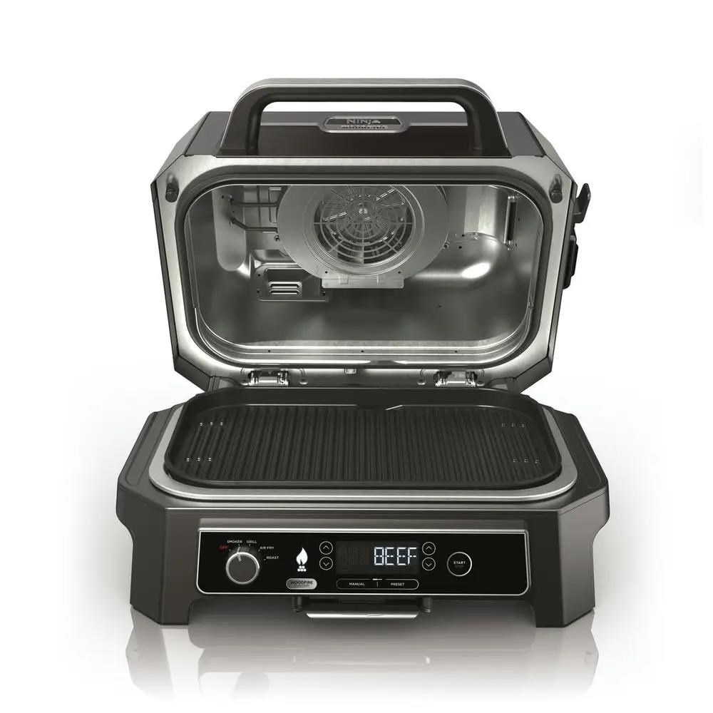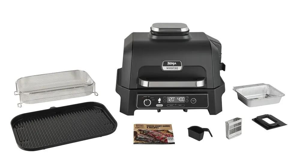 Ninja OG850EU Woodfire Pro XL, černý, elektrický gril a udírna, technologie Woodfire, teplotní sonda, 4v1 Airfryer