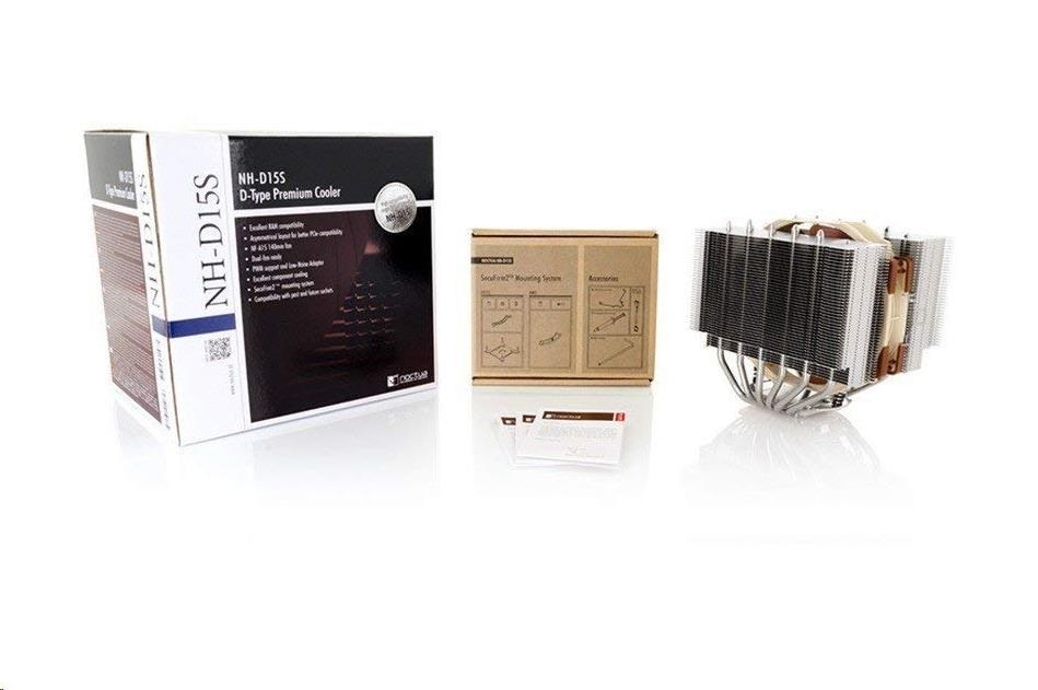 Vyvinutý tak, aby poskytl vynikající RAM a PCIe kompatibilitu. ND-D15S je asymetrická verze s jedním větráčkem původního prvotřídního chladiče NH-D15. Díky svému asymetrickému designu NH-D15S uvolní vrchní PCIe slot u většiny základních desek typu mATX a ATX. Současně díky jednomu větráčku a zapuštěným spodním žebrům je zaručena 100% RAM kompatibilita s pamětí až do výšky 65 mm. Uživatelé, kteří mají k dispozici dostatek prostoru, mohou rozšířit chladič o další 120mm nebo 140mm větráček, který se připevní na přední stranu žebrování, což výrazně zlepší výkon v režimu dvou větráčků. Chladič je vybaven montážní sadou SecuFirm2™ pro mnoho typů patic.