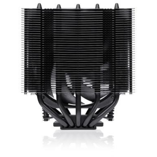 NH-D12L chromax.black je celočerná verze oceňovaného chladiče CPU NH-D12L třídy NH-D12L s nízkou výškou a 120 mm třídy, který byl navržen tak, aby kombinoval vynikající tichý chladicí výkon s vynikající kompatibilitou se skříněmi. Při výšce pouhých 145 mm (o 13 mm nižší než běžné 120mm modely Noctua) se hodí pro mnoho skříní 4U i užší věžové skříně, které byly dříve omezeny na řešení s 92mm ventilátory. Jeho pětivěžový design s pěti heatpipe a nejmodernější 120mm ventilátor NF-A12x25r zároveň umožňují dosáhnout úrovně účinnosti, která překonává mnoho 120mm modelů s plnou výškou. Díky své konfiguraci s jedním ventilátorem a asymetrickým sestavám žeber poskytuje NH-D12L 100% kompatibilitu RAM na AMD AM5/AM4 a Intel LGA1851/1700/1200 tím, že zůstává mimo paměťové sloty.