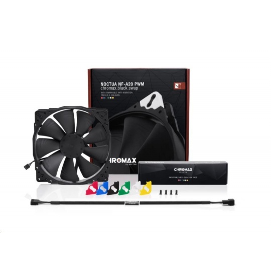 Řada NF-A20 se zasloužila o přední volbu při výběru 200mm větráčků množstvím ocenění a doporučení od technických časopisů a stránek po celém světě. NF-A20 PWM chromax.black.swap kombinuje tichý chod této řady a elegantní celočerný design řady chromax.black. Balení obsahuje také sady různobarevných kabelů a protivibračních podložek pro ty, kteří si rádi svůj stroj barevně sladí. Kvalitu chodu a spokojenost také zaručí SSO2 ložisko, více než 150000 hodin MTTF a 6 let záruky u výrobce.