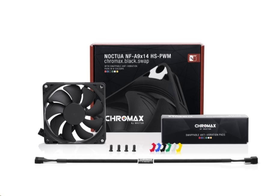Řada NF-A9x14 se zasloužila o přední volbu při výběru slim 92mm větráčků množstvím ocenění a doporučení od technických časopisů a stránek po celém světě. NF-A9x14 HS-PWM chromax.black.swap kombinuje tichý chod této řady a elegantní celočerný design řady chromax.black. Balení obsahuje také sadu protivibračních podložek pro ty, kteří si rádi svůj stroj barevně sladí. Kvalitu chodu a spokojenost také zaručí SSO2 ložisko, více než 150000 hodin MTTF a 6 let záruky u výrobce.
