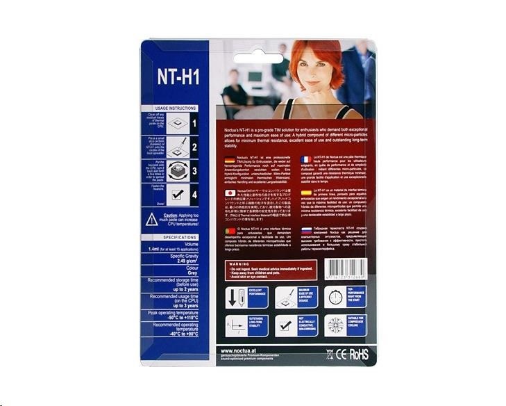 NT-H1 je uznávaná hybridní teplovodivá pasta, která získala více než 150 ocenění a doporučení od mezinárodních hardwarových webů a časopisů. Díky svému vynikajícímu výkonu, výjimečné snadnosti použití a vynikající dlouhodobé stabilitě se stal zavedeným favoritem mezi overclockery a nadšenými uživateli po celém světě. Ať už jde o vzduchové nebo vodní chlazení, aplikace pro CPU nebo GPU, přetaktování nebo tiché systémy: NT-H1 je osvědčená prémiová pasta, která zaručeně přinese skvělé výsledky.