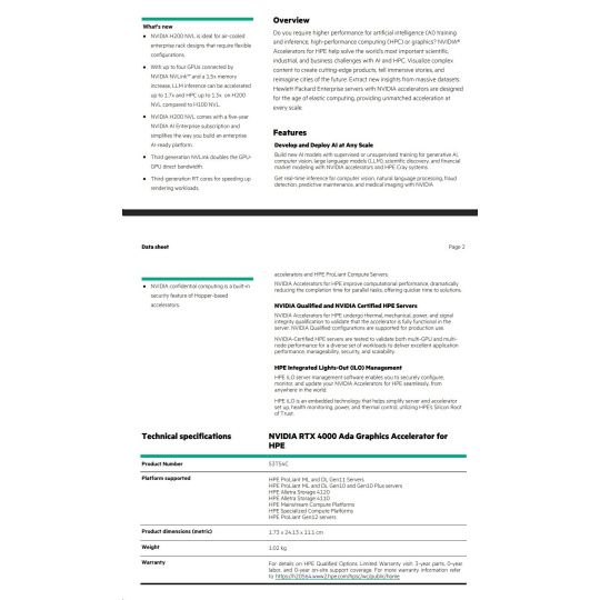 NVIDIA RTX 4000 Ada Graphics Accelerator for HPE