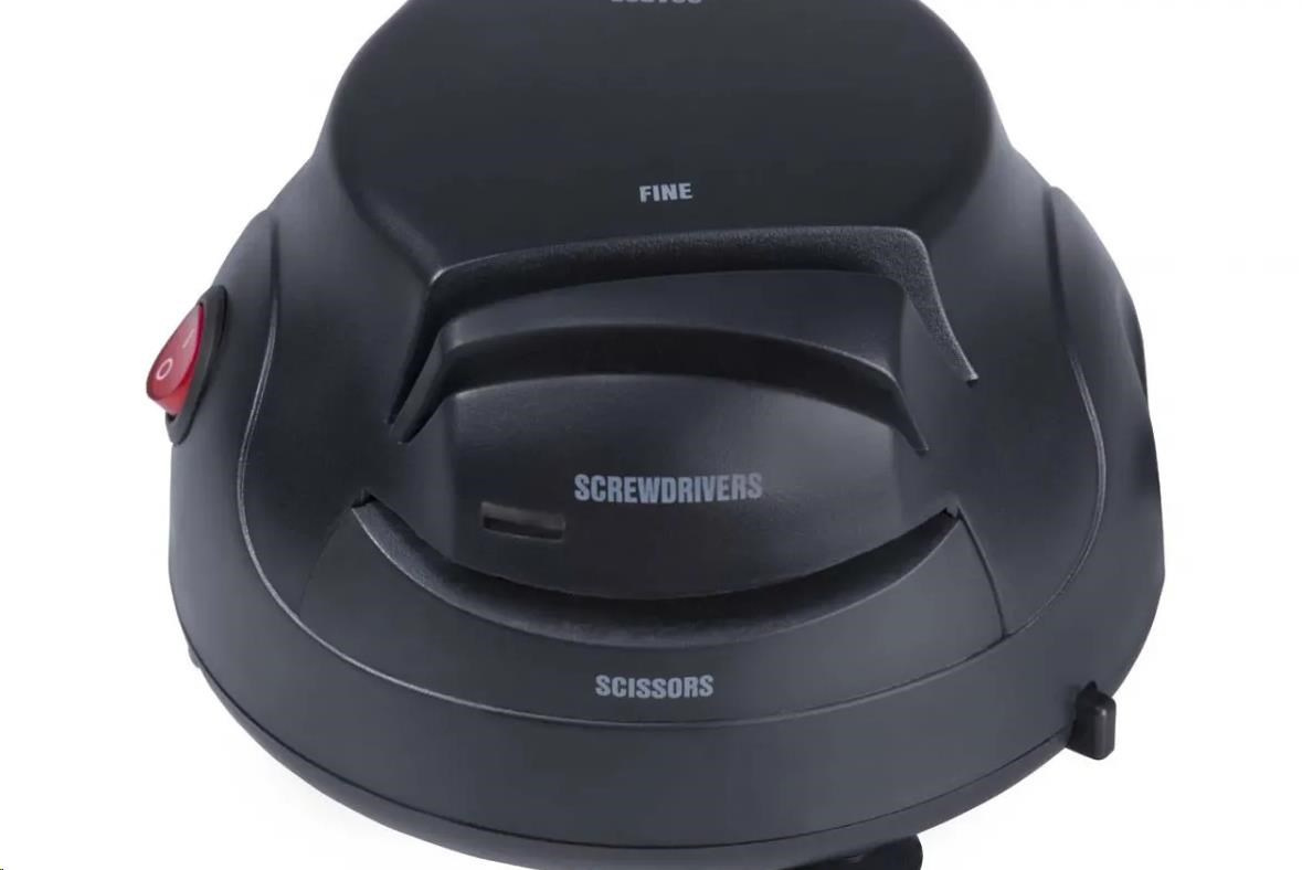 ORAVA elektrická bruska na nože a nůžky, dvoustupňový ostřící systém, kompaktními rozměry, černá