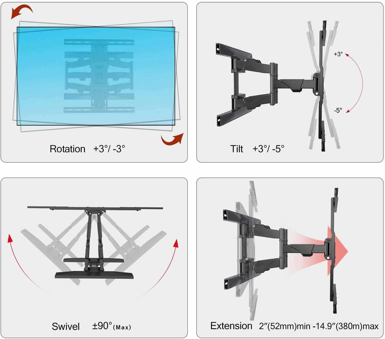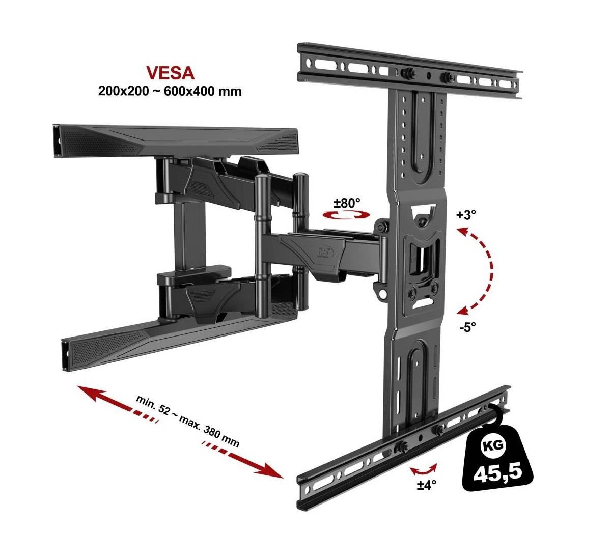 Kvalitní polohovatelný držák na Tv 43" až 75", výsuvný 52-380mm, otáčení do stran +/-60°, naklápění +3°/-5°, VESA 200x200 až 600x400, nosnost 45,5kg.... více
