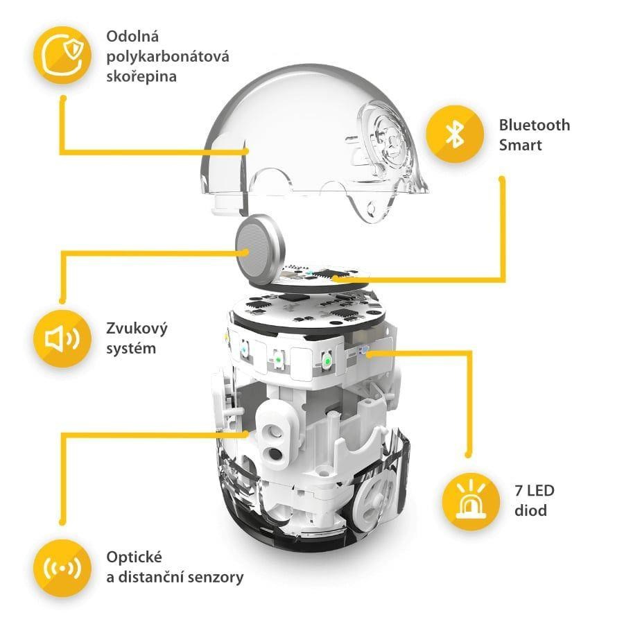 Chcete srandovního robota na ovládání, co se vejde do kapsy? Rádi byste přitáhli děti k informatice? Baví vás nové technologie a chcete si vyzkoušet programování? Začněte s Ozobot Evo, ten zvládne klidně všechno najednou a ještě víc. Jde o promyšlenou výukovou pomůcku, vhodnou pro zájmové i školní vzdělávání napříč předměty i stupni. Malý bot je nadupaný funkcemi, diodami, reproduktory a senzory, přesto jeho baterie vydrží celou vyučovací hodinu. Umí sledovat vodicí čáry a vykonat zakódované příkazy nakreslené na papíře, nebo provede všechno podle jednoduše vytvořeného skriptu, který sami naprogramujete v intuitivním editoru Ozobot Blockly či pokročilejším Ozobot Editoru. Zní to složitě? Vůbec z toho nemusíte mít strach. Ovládání je snadné a s přehledem ho zvládnou už 8leté děti a dospělí, kteří se drobné elektronice raději vyhýbají. A na ty vůbec nejlehčí úkoly si troufají i předškoláci! Už od nejnižšího věku tak můžete rozvíjet jejich kreativitu, kritické myšlení, schopnosti pracovat v týmu, kódovat a řešit problémy.