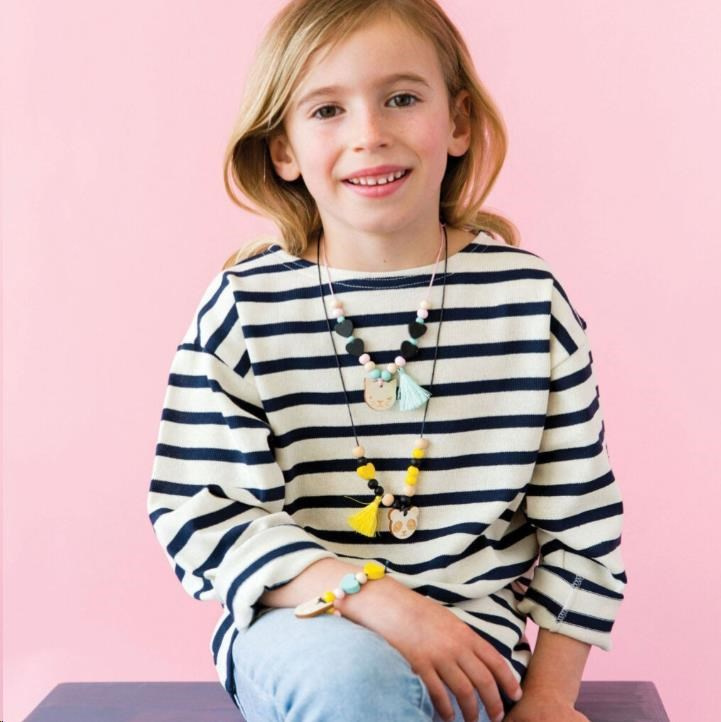 Souprava pro výrobů šperků dle vlastní fantazie obsahuje velké množství dřevěných korálků, odzdob a přívěsků, také ale šňůrky a bezpečnou navlékací jehlu. Sada je spolu s návodem k použití balena v praktickém plechovém kufříku vybaveném uchem.