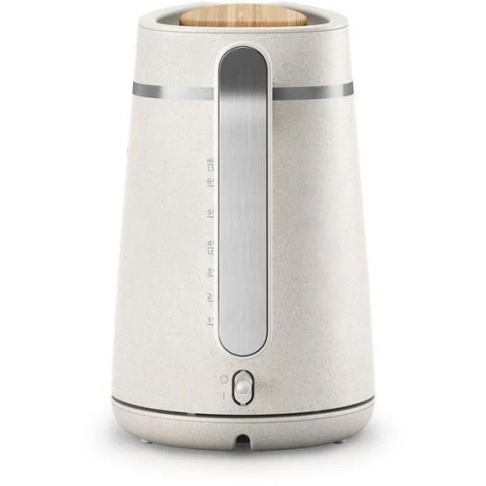 Vykročte vstříc zelenější budoucnosti s první rychlovarnou konvicí na světě vyrobenou z použitého kuchyňského oleje! Převratná metoda zpracování kuchyňských zbytků dala vzniknout speciálnímu bioplastu, který je mimořádně odolný a nezávadný. Konvice má minimalistický nadčasový design, který kombinuje recyklované a přírodní materiály. Skvěle se hodí do každého interiéru. Konvice má objem 1,7 l a díky snadno čitelnému indikátoru hladiny v okamžiku připraví požadované množství vody. Základna konvice je otočná o 360° a umožňuje snadnou manipulaci. Dolévání vody je možné pod proudem tekoucí vody. Přístroj disponuje řadou energeticky úsporných funkcí pro váš větší klid a šetrnost k přírodě.