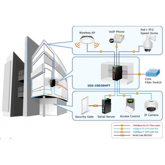 Planet IGS-10020HPT PoE switch 8x 1000Base-T, 2x SFP, 802.3at 270W, IP30, -40 až 75°C, SNMP, IGMPv3, IPv6