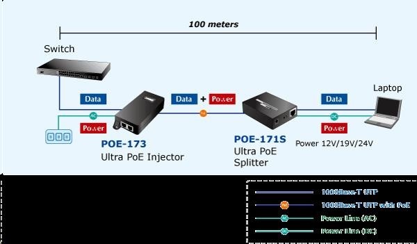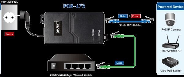 Planet POE-173 Ultra Poe injektor napájení po ethernetu IEEE802.3at/af, 60W, Gigabit