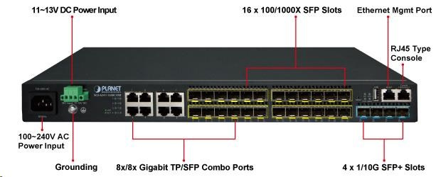 Planet switch SGS-6341-16S8C4XR, Switch, L3, 8x 1000Base-T, 24x 1Gb SFP, 4x 10Gb SFP+, Web/SNMP, ACL, QoS, IGMP,IP stack