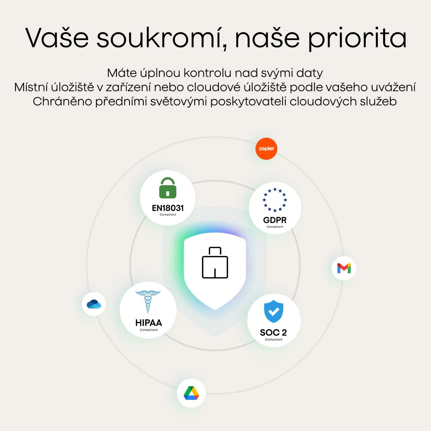 • Certifikovaný soulad s HIPAA, zákonem pro nakládání s citlivými daty ve zdravotnictví v USA