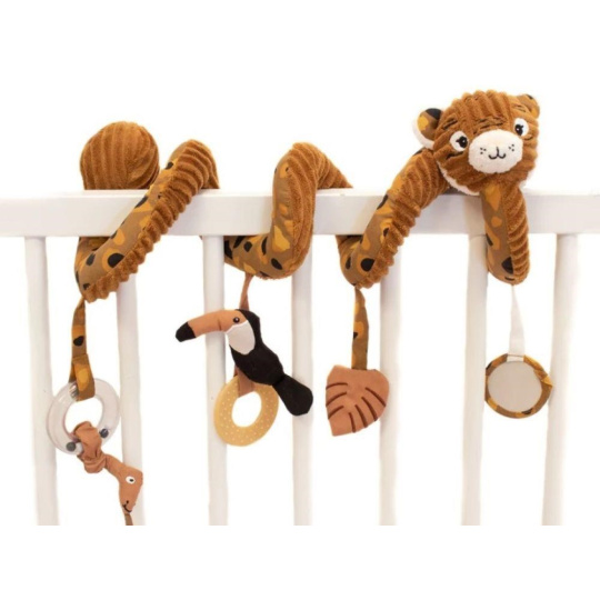 Originální spirála na postýlku, na kočárek nebo na hrazdičku, v podobě roztomilého tygra upoutá pozornost každého miminka. Úžasně heboučká spirála s chrastítkem, zrcátkem, kousátkem i s šustícím lístečkem stimuluje dětské smysly, rozvíjí jemnou motoriku a koordinací očí a rukou. Prohlédněte si originální spirálu, která vykouzlí úsměv na tváři dětem i rodičům..