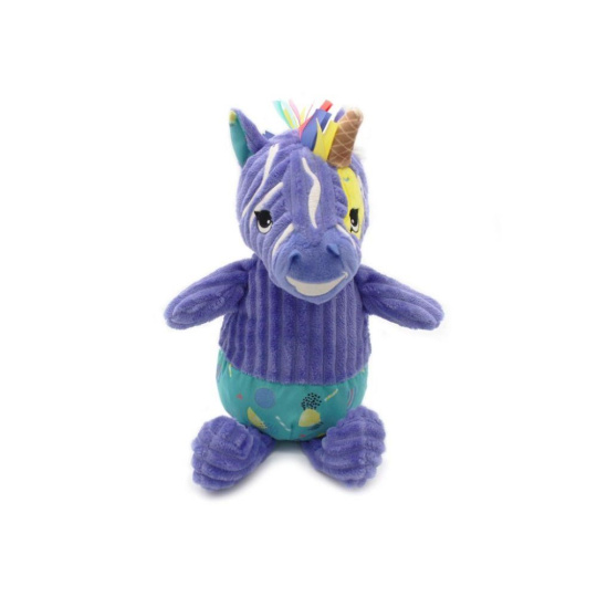Roztomilý plyšák v podobě zebry, v krásné fialové barvě, je originálním dárkem k jakékoliv příležitosti. Úžasně heboučké plyšové zvířátko ušité z měkoučkého manšestru, ozdobené barevnými stuhami, je ideálním společníkem do postýlky nebo kolébky, do kočárku i na cesty. Plyšovou zebrou v dárkové krabičce a pokladničce můžete obdarovat miminko i větší slečnu..