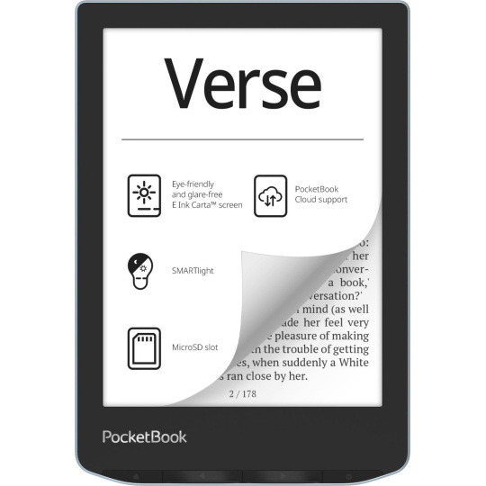 PocketBook Verse je kompaktní zařízení, které váží pouhých 182 g a je dokonalou kombinací mechanických ovládacích tlačítek a dotykové obrazovky