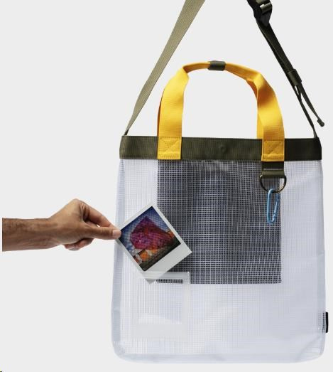Vyznačuje se charakteristickými barvami Polaroidu a držákem, který umožňuje personalizaci pomocí fotografie Polaroid, takže je skutečně jedinečný. Ukažte svého rozkošného psa, nejnovější fotografii z dovolené nebo úžasnou krajinu, kterou jste vyfotili. Záleží jen na vás. Držák na polaroid Silná rukojeť a popruh na tělo Nastavitelný ramenní popruh Značka Polaroid Vnější strana z recyklovaného ripstopu Polyesterová podšívka Středové zapínání na patentky Upevnění karabinou Základní konstrukce ve tvaru T Černá taška ze 100% polyesteru Rozměry: D 360 mm x V 470 mm x H 15 mm..