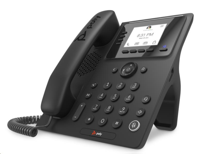 | Audio | Technologie Poly Acoustic Clarity zajišťuje plně duplexní hovory a potlačuje akustickou ozvěnu i okolní šum; Individuální nastavení hlasitosti s vizuální zpětnou vazbou pro každou zvukovou cestu; Komfortní tvorba hluku; Generování tónů DTMF (RFC 2833 a v pásmu); Přenos zvukových paketů s nízkým zpožděním; Adaptivní paměti pro vyrovnání zpoždění |
