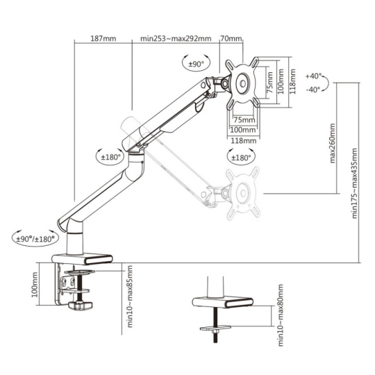 Designový stolní držák v prémiové kvalitě na monitory 17-32", plně polohovatelný, VESA 75x75 a 100x100, nosnost 9kg.... více