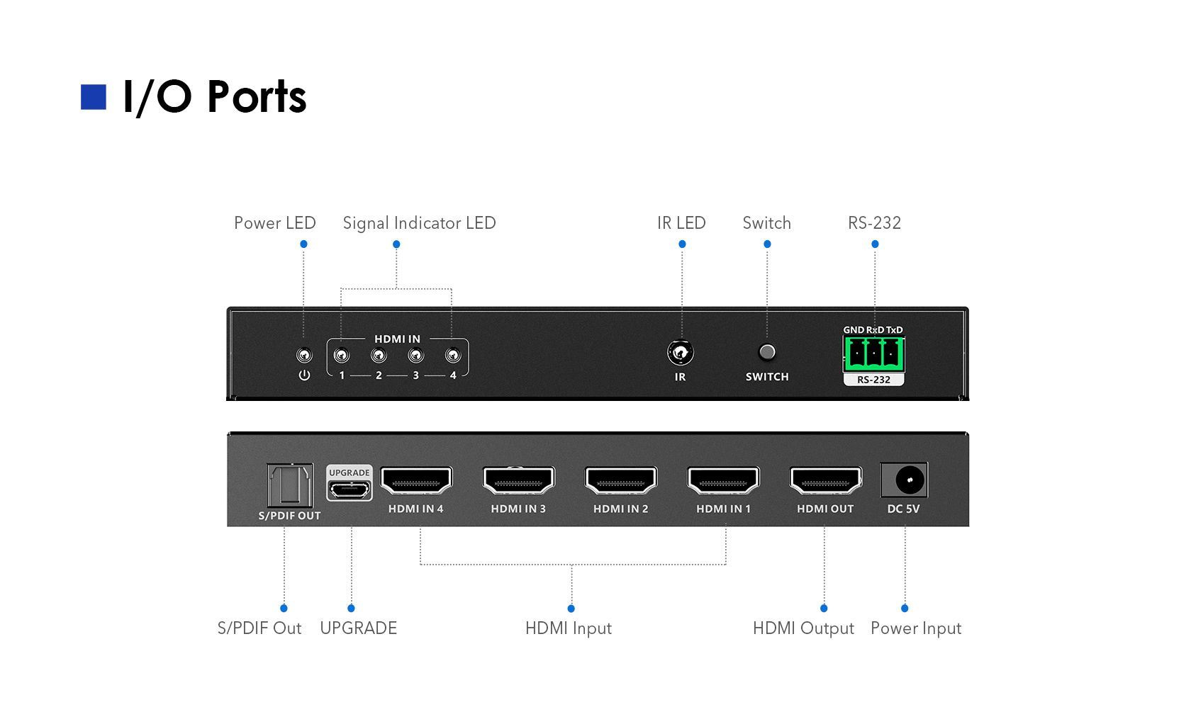PremiumCord HDMI switch 4:1 s podporou rozlišení 8K@60Hz,4K@120Hz, 1080P, HDR, s dálkovým ovladačem