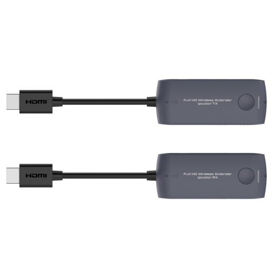 - Vysílací a přijímací adaptéry mají krátký HDMI kabel pro snadné zapojení do počítače a zobrazovače nebo TV.