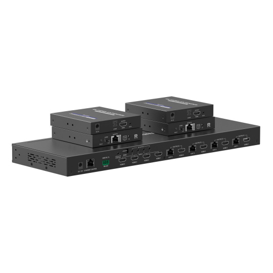 Umožní přepínat a propojit čtyři zdroje HDMI signálu na 4 HDMI zobrazovače, monitory na velkou vzdálenost až 70m pomocí UTP kabelu a navíc 4 lokální monitory