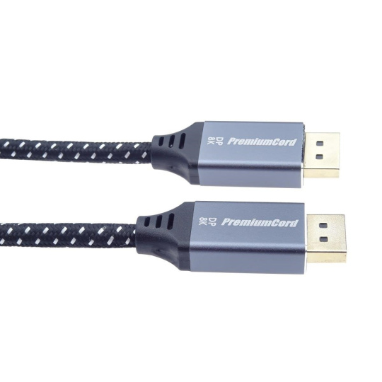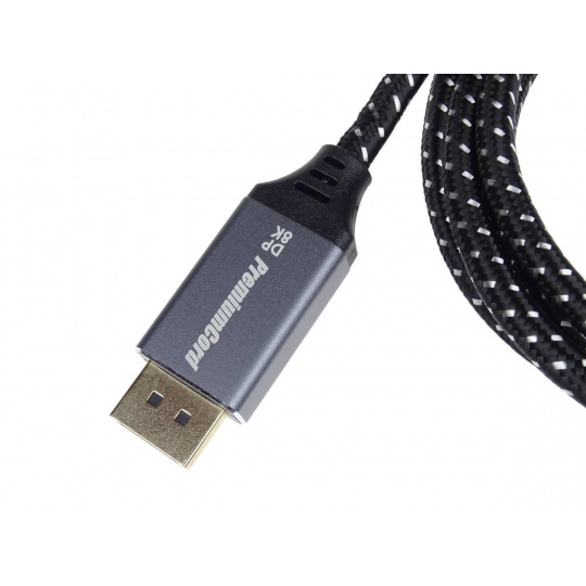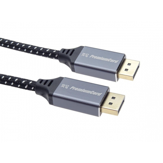 PremiumCord DisplayPort 1.4 přípojný kabel M/M pro rozlišení 8K, kovové krytky a zlacené konektory, 1,5m