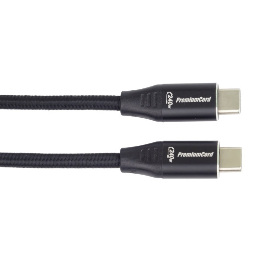 PREMIUMCORD Kabel USB-C M/M, 240W 480Mbps černý bavlněný oplet, 2m