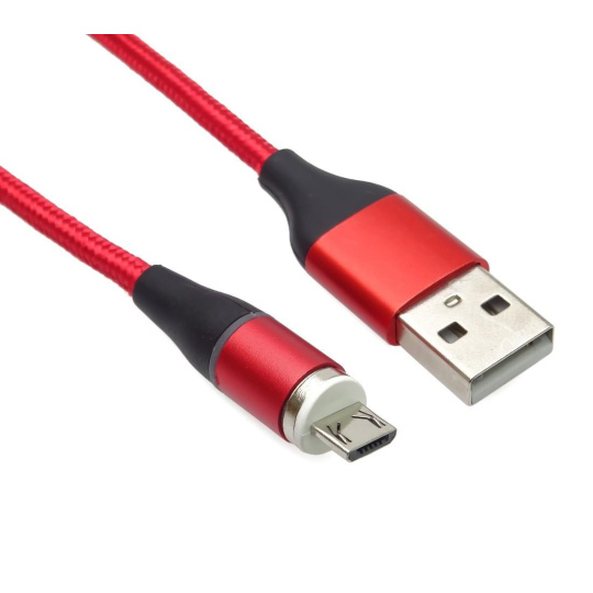 PremiumCord Magnetický micro USB a USB-C nabíjecí a datový kabel 1m, pro proud až 3A, červený