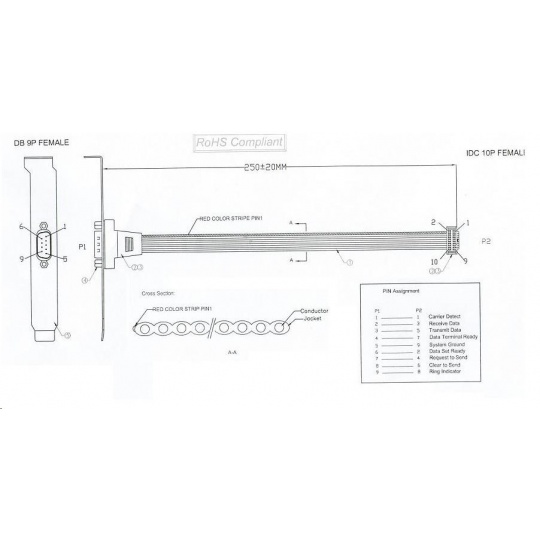 Vývod pro sériový port RS232 ze základní desky počítače na záslepku. Vývod sériového portu ze základní desky počítače na záslepku na zadní straně počítače. - konektor Canon 9M na záslepce - interní konektor 2x 5pinů - délka kabel 23cm.