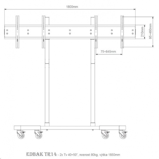 Profesionální stojan na 2 Tv 40-50" vedle sebe, vhodný na prezentace, výstavy, konference, EDBAK TR14 - držák