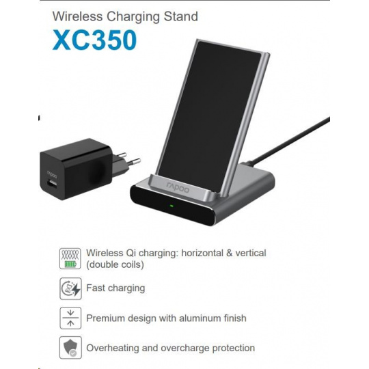 RAPOO nabíjecí stojan XC350 Wireless Charging Stand Silver