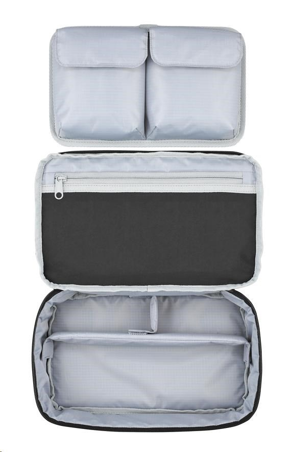 Dvě přepážky na suchý zip umožňují vytvořit přihrádky, do kterých se dokonale vejdou herní handheldy, jako je ROG Ally, nabíjecí dokovací stanice ROG Gaming Charger Dock, napájecí kabely, myši a další vybavení.