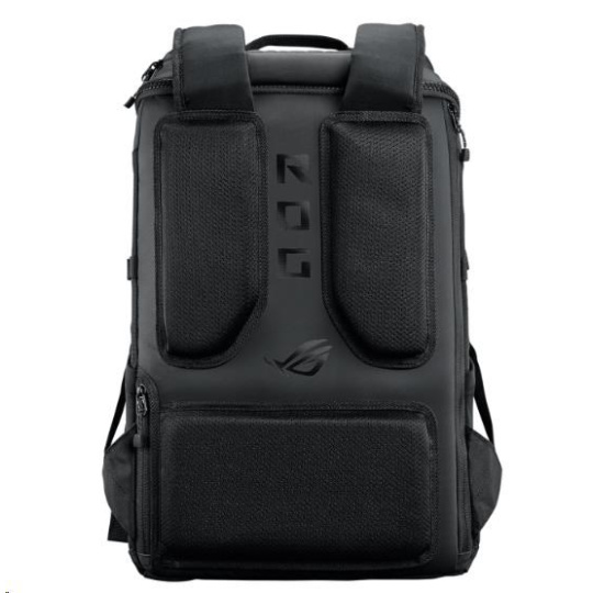 Herní batoh ROG Ranger BP2701 s objemem 22 litrů má velkou polstrovanou kapsu, do které se vejde až 17palcový notebook, a několik menších kapes na klávesnici plné velikosti, myš a podložku pod myš, headset, nabíječku a další vybavení.